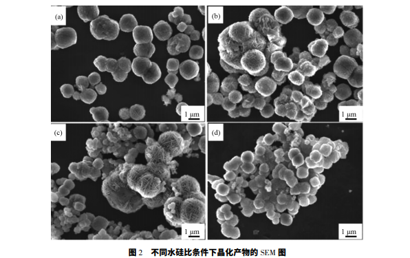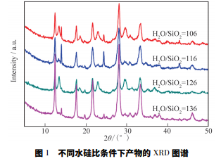 按照物質的量之比 SiO2 ∶ Al2O3 ∶ Na2O ∶ H2O= 1 ∶ 0.51 ∶ 1.66 ∶ ( 106 ~ 136) ,將 NaOH 和去離子水混 合,分別加至粉煤灰提取的 H2SiO3 和 Al( OH) 3 沉淀 中,攪 拌 至 溶 解,得 到 Na2SiO3 和 NaAlO2 溶 液,將 NaAlO2逐滴加入 Na2SiO3 中,攪拌 30 min 后移至反應 釜中在 120 ℃下晶化 8 h 得到產品。