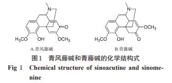 青風藤堿(Sinoacutine,結構式見圖1A)為異喹啉類 生物堿,是從防己科千金藤屬云南地不容(Stephania yunnanensis Lo)等多種植物中提取分離而得。研究發(fā) 現,青風藤堿具有鎮(zhèn)靜、鎮(zhèn)痛、抗炎、抗心律失常等活 性,例如青風藤堿能明顯提高小鼠熱板痛閾和足趾電刺 激痛閾,減少醋酸所致的小鼠扭體次數;與戊巴比妥鈉 聯(lián)用后,可增強后者的鎮(zhèn)靜催眠作用;此外,青風藤堿 還具有抗Ⅱ型膠原蛋白致大鼠類風濕性關節(jié)炎的作用, 并可明顯降低氯仿致小鼠室顫的發(fā)生率 。本課題組 前期研究發(fā)現,青風藤堿能明顯縮短氯化鋇致心律失常 模型大鼠恢復竇性心律所需的時間。